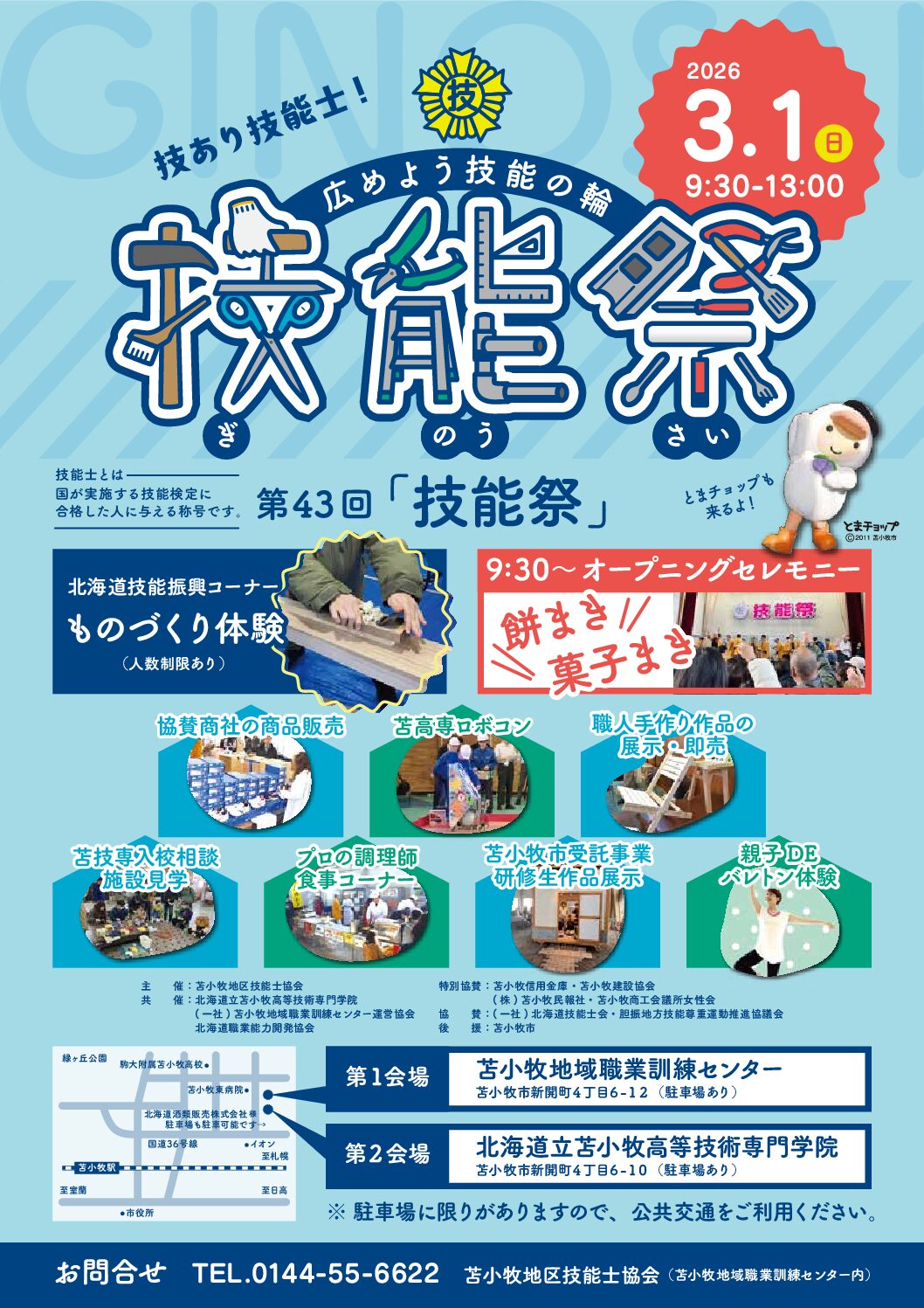 ※会場は2会場ございます。第1会場:苫小牧地域職業訓練センター 第2会場:北海道立苫小牧高等技術専門学院